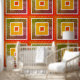 Papier Peint Retro Geometric Color Blocks Pattern