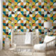 Papier Peint Retro Mod Carrés Turquoise Orange Vert Jaune Brown