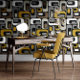 Papier Peint Retro Mod Ovals Mustard Beige Taupe Grey Black