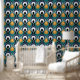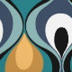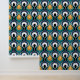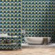 Papier Peint Rétro Mood Mustard Turquoise Aqua Blue Brown