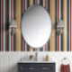 Papier Peint Retro Revival Stripes Rouge, Or, Marine Mi-Siècle