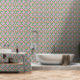 Donnez à un mur de salle de bain l'aspect de mosaïques avec ce motif plat qui crée une illusion de carreaux de verre surélevé. Le rose rose pastel et le lilas côtoient les nuances de vert dans les carrés individuels divisés par un effet de grout subtil.