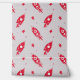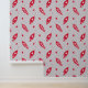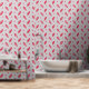 Ce joli papier peint est orné d'un motif fait de fusées spatiales rouges dessinées à la main.
