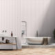 Un rose vif sur un rose pâle et poussiéreux, des rayures espacées uniformément répètent le papier peint motif.