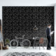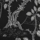 Un motif foncé et macabre et transparent avec des illustrations complexes de buissons roses épineux, des roses en fleurs, des toiles d'araignées avec araignées, et des mains squelettiques émergeant de la terre. Le design noir et blanc monochromatique crée une esthétique vintage, gothique et légèrement éffrayante.