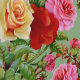 Ce produit se targue d'un élégant motif de roses audacieux aux couleurs éclatantes - rouge, jaune, rose et complété par un feuillage vert.