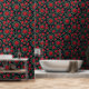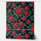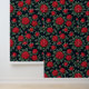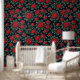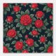 Un motif floral transparent avec des roses rouges vibrantes en pleine floraison, entouré de feuilles verts luxuriants. Placé face à un arrière - plan noir profond, ce contraste saisissant renforce l'élégance et la romance du design, le rendant parfait pour les textiles, les papiers peints ou les imprimés décoratifs.
