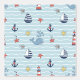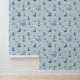Dive into a delightful underwater adventure with this charming nautical pattern. Against a soft blue, wavy stripe background, adorable hand-drawn illustrations of smiling blue whales, cheerful sailboats, classic red and white lighthouses, anchors, starfish, and compasses create a fun, repeating design. This playful, gender-neutral pattern is perfect for adding a touch of coastal whimsy to a baby nursery, toddler bedroom, playroom, or bathroom. The simple, cheerful art style and soothing colors evoke the joy of the ocean and make it an ideal choice for creating a bright, breezy maritime space. Search ID1228 to see other products with this cute pattern. Note: design adapted from generative content.