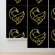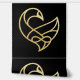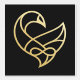 L'image de l'oiseau Sankofa™ présente un design stylisé et abstrait sur fond noir. Elle est composée de lignes lisses et fluides de couleur or, formant une forme qui ressemble à un cœur, entrelacée avec un symbole de l'infini. Les lignes sont audacieuses et ont une épaisseur uniforme, créant un sentiment d'élégance et de continuité. Le design global est minimaliste et moderne, avec un accent sur la fluidité et l'interconnexion des formes.