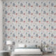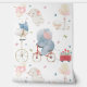 The color palette combines soft pastel blues, blush pinks, warm neutrals, and gentle greens, making the wallpaper perfect for creating a peaceful and joyful nursery environment. The characters are playful but gentle, making the design suitable for babies and toddlers while still feeling artistic and timeless.