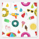 Un design d'été unique, dessiné à la main, avec des jouets de plage, des glaces, de la pastèque et des accessoires d'été. Une plage d'été ou une piscine design idéal pour les enfants fêtes de fin d'école et la décoration d'été et de maison d'été. Un design amusant pour tous ceux qui aiment l'été et la fête pendant la saison estivale.