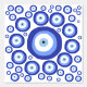 Un motif abstrait du symbole de la chance grecque de l'oeil. Ce symbole est également lié à de nombreuses autres cultures et traditions. Les différentes tonalités bleues contrastent avec l'arrière - plan blanc créant une atmosphère d'été d'île grecque. Un cadeau parfait pour quiconque aime les illustrations abstraites mystiques. Idéal pour un cadeau d'anniversaire, un décor de pépinière, un salon pour enfants, un décor maison, cadeau de Noël ou cadeau pour toute autre occasion spéciale.