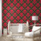 Le rouge intense fleurit sur l'arrière - plan vert foncé. Parfait pour ajouter un charme européen classique à des murs d'accent, des poudres, des pépinières ou un décor événementiel sophistiqué, ce papier peint offre une déclaration audacieuse mais gracieuse. Son motif en textile vintage et sa palette de couleurs modernes en font un choix idéal pour ceux qui aiment le style raffiné avec une touche contemporaine.