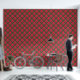 Papier Peint Tapisserie française rouge fleuris sur vert foncé