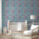 Jolies tasses de thé rétro en rose pastel, bleu, vert et rouge sur un arrière - plan bleu turquoise. Art original de Nic Squirrell. Parfait pour votre cuisine, salle à manger, restaurant, salon de thé ou café.