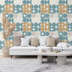 Ce design présente une motif géométrique moderne avec des cercles et des demi-cercles dans les tons vert turquoise, marron ocre, beige, taupe et ivoire sur fond blanc. C'est un design élégant et élégant qui incarne le minimalisme éclectique, parfait pour les architectes d'intérieur artistiques, les amateurs de décoration, les créateurs de tendances, et les amateurs de motifs géométriques numériques vintages rétro ou abstraits. Ce motif branché et coloré est polyvalent, disponible sur une variété d'éléments de décoration contemporaine, ce qui le rend adapté pour améliorer l'ambiance des espaces tels que chambres de maître, cuisines, salons, grottes, dortoirs, condos, studios ou appartements.