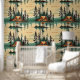 Si vous cherchez à utiliser du bâton et peler le papier peint dans un cabine ou une maison d'été à thème de camping, alors voici ya aller. Ces graphismes sont vert forêt et bronzés couleurs vintages et sont un motif répété de tentes et de pins avec un reflet dans l'eau.