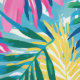 Un motif sans soudure avec des feuilles de palmiers rose, vert et vert minty sur un arrière - plan blanc. Le design est peint à la main, mêlant des tons vifs et doux pour créer une atmosphère fraîche et tropicale.