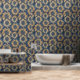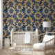 Papier Peint Tournesols en or et en marine