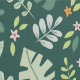 Des fleurs tropicales et des palmiers avec des animaux de safari dans un motif transparent sur un arrière - plan changeant vert foncé. Parfait pour une sorte de chambre.