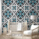 Ce produit a un design complexe avec un arrière - plan bleu foncé et des motifs ornementaux blancs. Le design rappelle les styles traditionnels de céramique ou de porcelaine, qui peuvent intéresser ceux qui apprécient l'esthétique classique ou vintage.