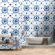 Ce produit a un design complexe avec un arrière - plan bleu foncé et des motifs ornementaux blancs. Le design rappelle les styles traditionnels de céramique ou de porcelaine, qui peuvent intéresser ceux qui apprécient l'esthétique classique ou vintage.