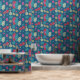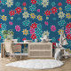 Papier Peint Turquoise Bleu Rouge Chaud Rose Beige Fleurs Motif