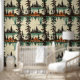 Si vous cherchez à utiliser du bâton et peler le papier peint dans un cabine ou une maison d'été à thème de camping, alors voici ya aller. Ces graphismes sont vert foncé et orange tannis avec un beige d'arrière - plan blanc. Une tente au milieu de grands pins répété motif.