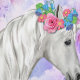 Photo Christina Li | Shutterstock. ID d'image : 774271843 | Ce motif présente des licornes blanches entourées de roses roses.