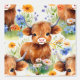 Les animaux de ferme d'aquarelle vaches hautes terres dans un champ de fleurs.