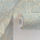 Papier Peint Ventilateur Art Déco Ocean Shell en bleu doux et o