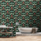 Ce papier peint présente une illustration élaborée de style coupe-bois d'un plante Vénus et d'un papillon bleu visitant ses fleurs. Inspiré par le mouvement des arts et de l'artisanat victoriens, ce design a une aura gothique et des couleurs vives,