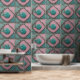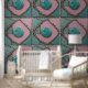 Papier Peint Verdigris argenté et rose Abstrait Rhapsody