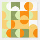 Ce design présente une motif géométrique moderne avec des cercles et des demi-cercles dans les tons vert foncé de la forêt, citron vert clair, jaune maïs et orange sur fond blanc. C'est un design élégant et élégant qui incarne le minimalisme éclectique, parfait pour les architectes d'intérieur artistiques, les amateurs de décoration, les créateurs de tendances, et les amateurs de motifs géométriques numériques vintages rétro ou abstraits. Ce motif branché et branché est polyvalent, disponible sur une variété d'éléments de décoration contemporaine, ce qui le rend adapté pour améliorer l'ambiance des espaces tels que chambres de maître ou d'enfants, cuisines, crèches, salons, grottes pour femmes, dortoirs, condos, studios ou appartements.