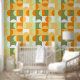 Papier Peint Vert clair chaux Orange Blanc Cercles Art Motif