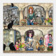 L'art d'Anton Pieck sur la vieille peinture du marché d'Amsterdam AI générée avec quelques modèles modernes et des chats noirs pour en faire un design unique