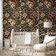 Papier Peint Vintage Squirrel and Flowers Pattern