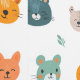 Des visages adorables d'animaux dans un motif sans soudure avec des chats, des ours et d'autres créatures boisées, accentués de feuilles épars sur un arrière - plan blanc. Parfait pour les designs pour enfants et le décor de pépinière.