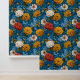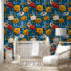 Papier Peint Vivid Maximalist Jaune et Crème sur Floral Bleu