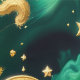 Papier Peint Wallpaper - Emerald Celestial Moon Design