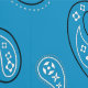 Ce papier peint peel and stick a l'allure d'un bandana occidental classique aux formes cachemire en noir et blanc dressé contre un arrière - plan bleu moyen.