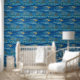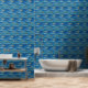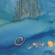 Des vagues bleues vibrantes avec l'abbaye de Whitby et les baleines et bien sûr l'ammonite.