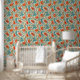 Papier Peint William Morris inspiré terre cuite pastel bleu