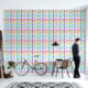 Bring instant cheer to your space with this wobbly paint stroke style neon pastel plaid wallpaper for interiors. The soft rainbow stripes and woven look create are ideal for brightening living rooms, nurseries, or creative studios. A colourful, bold, and maximalist statement piece that adds imagination, joy, and optimism to any wall. Great for fun and colourful birthday photo walls, too!