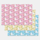 Un joli ensemble de 3 feuilles de papier d'emballage plat avec un adorable motif d'oie. L'un est rose, l'autre est jaune et l'autre est bleu. Parfait pour les baby showers ou anniversaires. © ArianeC Illustrations-Tous droits réservés