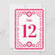 Cette belle carte de numéro de table en papier picado mariage d'inspiration est ornée d'un cadre coloré rose chaud sur un arrière - plan blanc, et d'une typographie festive. Ce design élégant et moderne est un choix fabuleux pour un mariage latino, un dîner de répétition, une fête de fiançailles ou une douche nuptiale. Voir la coordination des éléments de la collection...