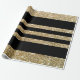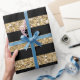 Papier scintillant de parties scintillantes de faux d'or et d'emballage cadeau de rayures de noir.