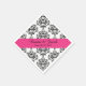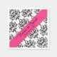 Serviettes en papier personnalisées pour mariage réalisées dans un motif damas noir et blanc. Un bande rose vif traverse la serviette en diagonale, avec du texte noir. Personnalisez le texte avec les noms des mariés et la date du mariage.