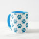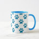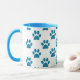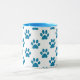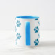 Tasse à café avec pattes de chiot bleu imprimé sur arrière - plan blanc. Un cadeau parfait pour l'amoureux des animaux.