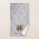 Ajoutez une touche unique à votre salle de bain avec un ensemble de serviettes de bain personnalisées à libellules bijoux. Le design des serviettes comporte un papillon joliment décoré avec un motif vintage et gris damassé. Autres cadeaux disponibles avec ce design aussi.